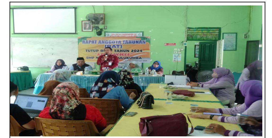 SUARAGURUSULSELNEW.COM–BULUKUMBA; – Rapat Anggota Tahunan (RAT) Koperasi BAHAGIA SMPN 2 Bulukumba tahun 2025 telah sukses digelar pada hari Kamis, 2 Januari 2025, di Ruang Lab IPA SMPN 2 Bulukumba. Kegiatan ini dihadiri oleh seluruh anggota koperasi yang terdiri dari guru, karyawan, serta undangan dari Dinas Koperasi Kabupaten Bulukumba. RAT ini bertujuan untuk menyampaikan laporan pertanggungjawaban pengurus koperasi tahun buku 2024, menyusun rencana kerja tahun 2025, serta menetapkan strategi kebijakan untuk meningkatkan kinerja koperasi di masa mendatang.