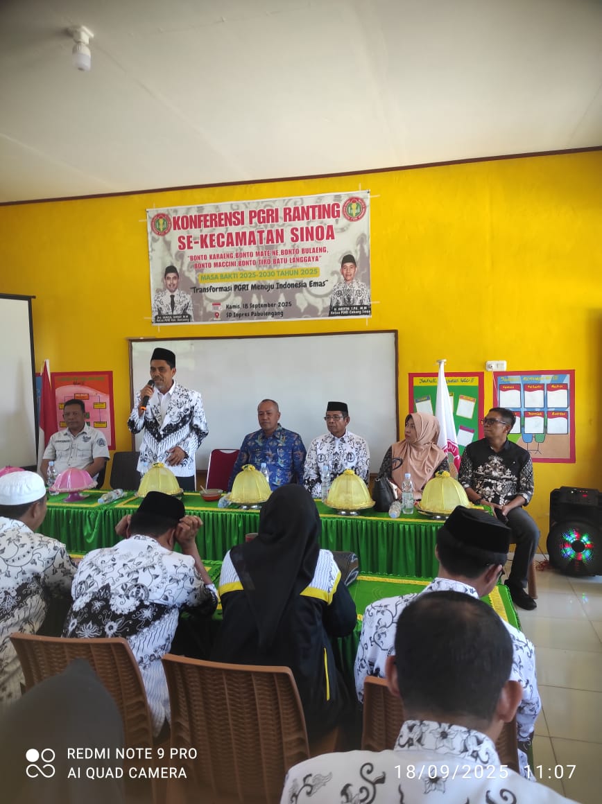 BANTAENG, SULAWESI SELATAN – Persatuan Guru Republik Indonesia (PGRI) Cabang Sinoa, Kabupaten Bantaeng, menggelar acara penting berupa pelantikan pengurus baru dan konferensi PGRI Ranting Wilayah Kecamatan Sinoa tahun 2025. Acara ini berlangsung sukses pada Kamis, 18 September 2025, bertempat di SD Inpres Pa’bulengan, Kecamatan Sinoa.