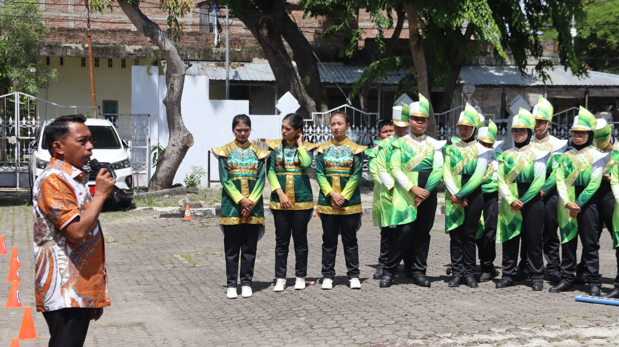 Sebelum pelepasan, tim marching band SMPN 1 menampilkan aksi mereka di hadapan Bupati Sidrap yang turut disaksikan para guru serta orang tua dan wali siswa.