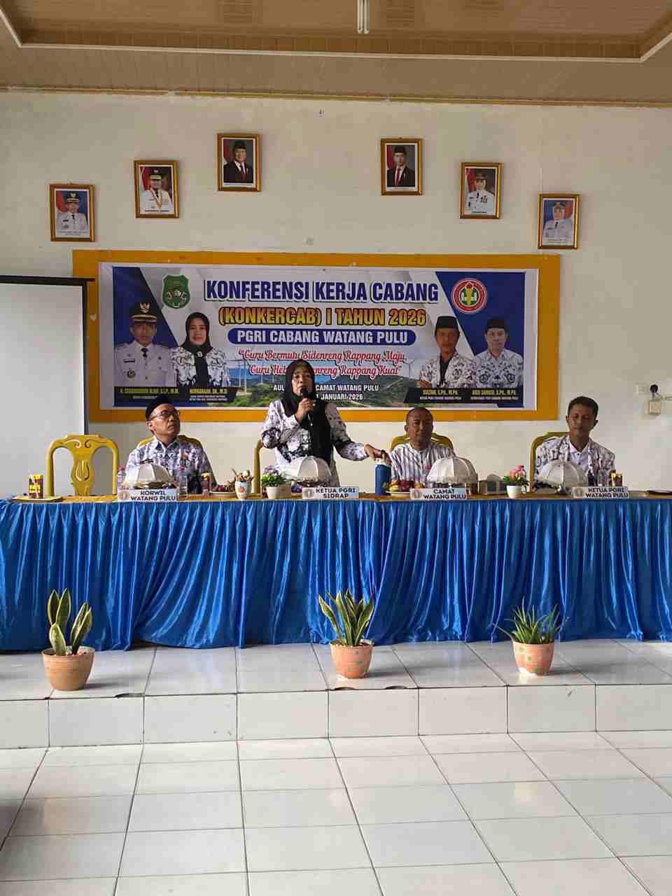 Pada kesempatan tersebut, Ketua PGRI Kabupaten Sidenreng Rappang sekaligus Wakil Bupati resmi membuka Konferensi Kerja Cabang PGRI Kecamatan Watang Pulu Tahun 2026.