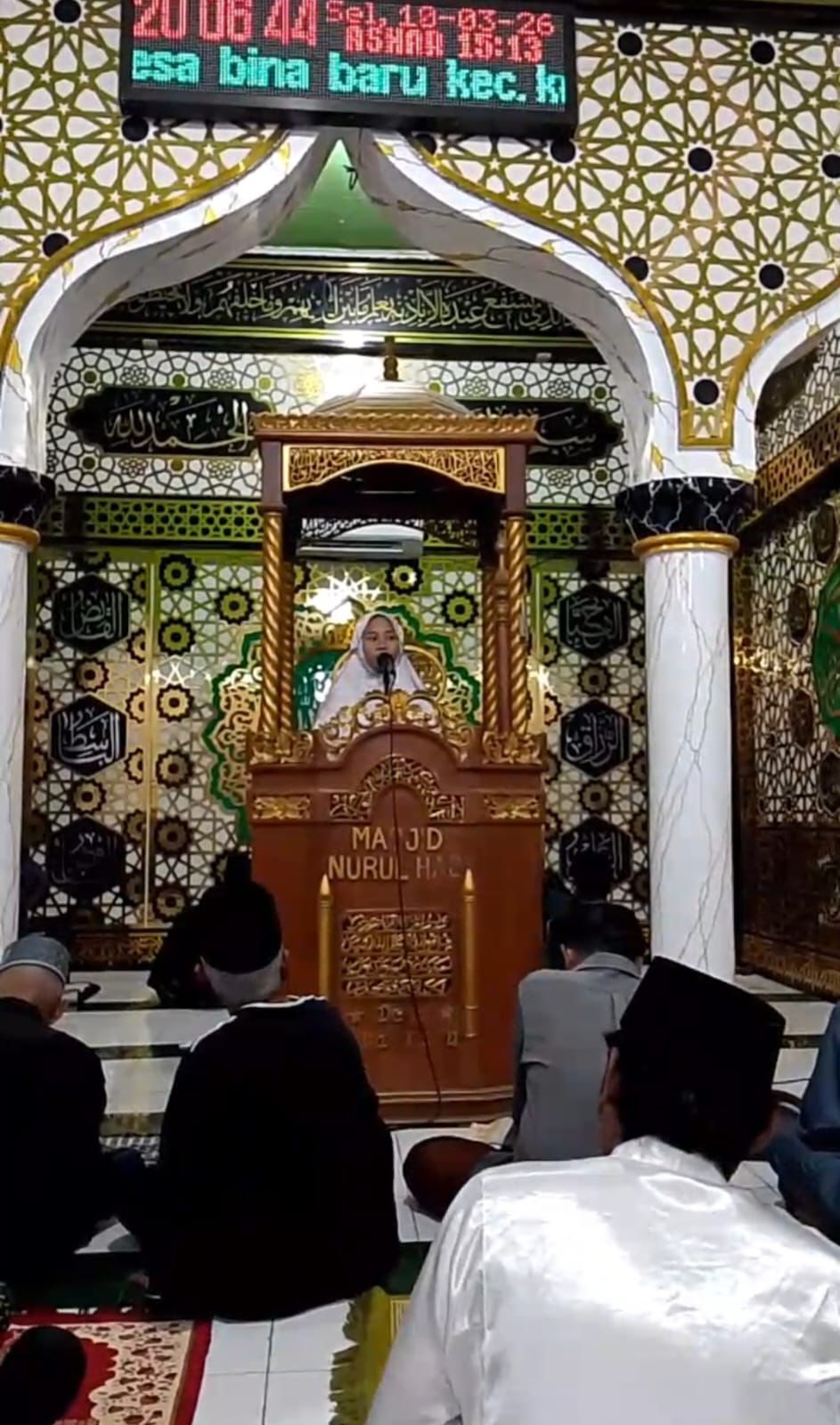 Salah satu peserta didik yang tampil adalah Nairah Hasan, siswi kelas VI yang membawakan ceramah menjelang pelaksanaan salat tarawih di Masjid Nurul Haq, Desa Bina Baru, Kecamatan Kulo. Kegiatan tersebut berlangsung pada Selasa, 10 Maret 2026 dan disaksikan oleh jamaah dengan penuh antusias.